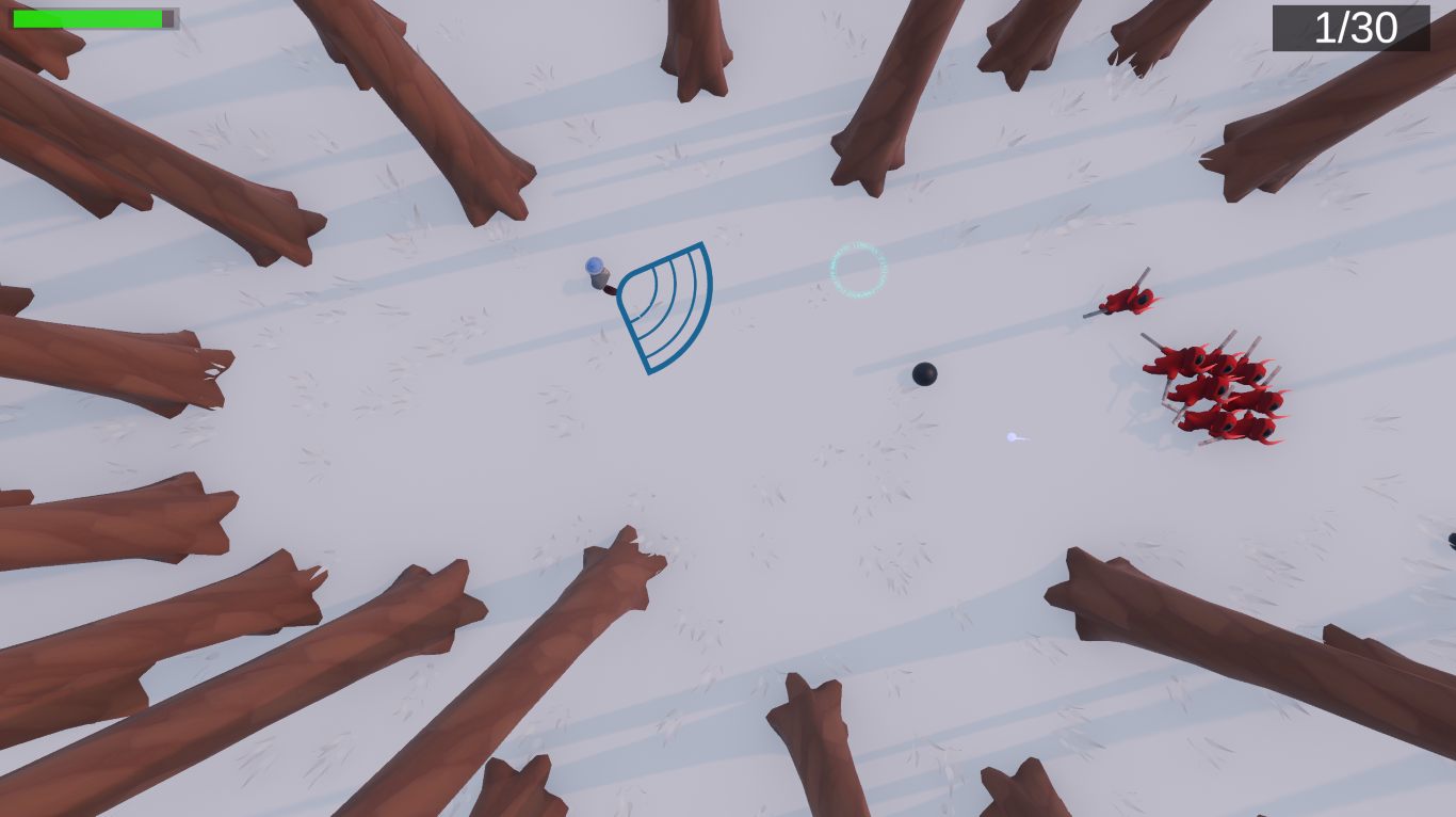 The theme for this game jam was “Summoning” so we eventually came up with the idea of a character who cast a spell which endlessly summons bombs around them. This character can then kick the bombs into enemies to defeat them.